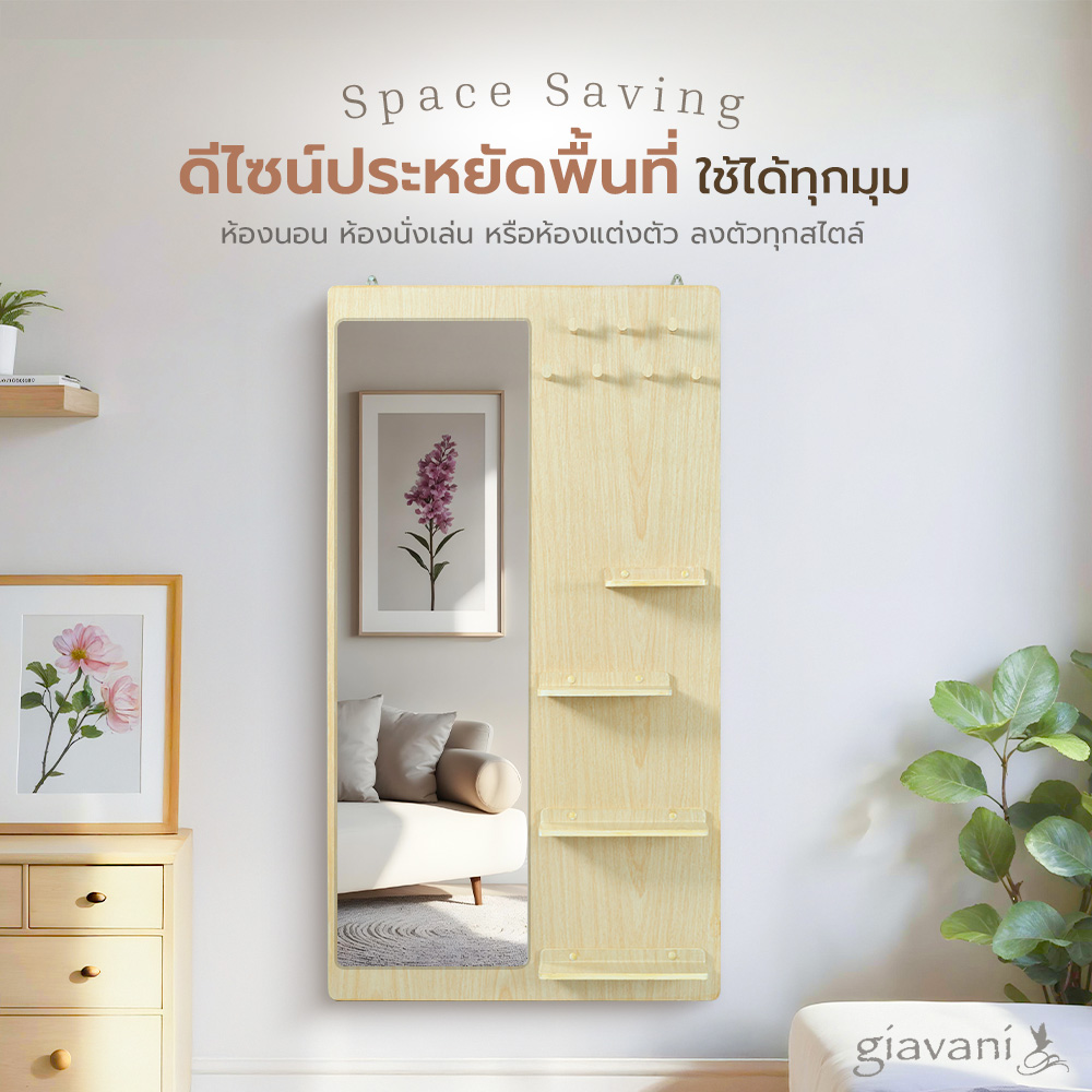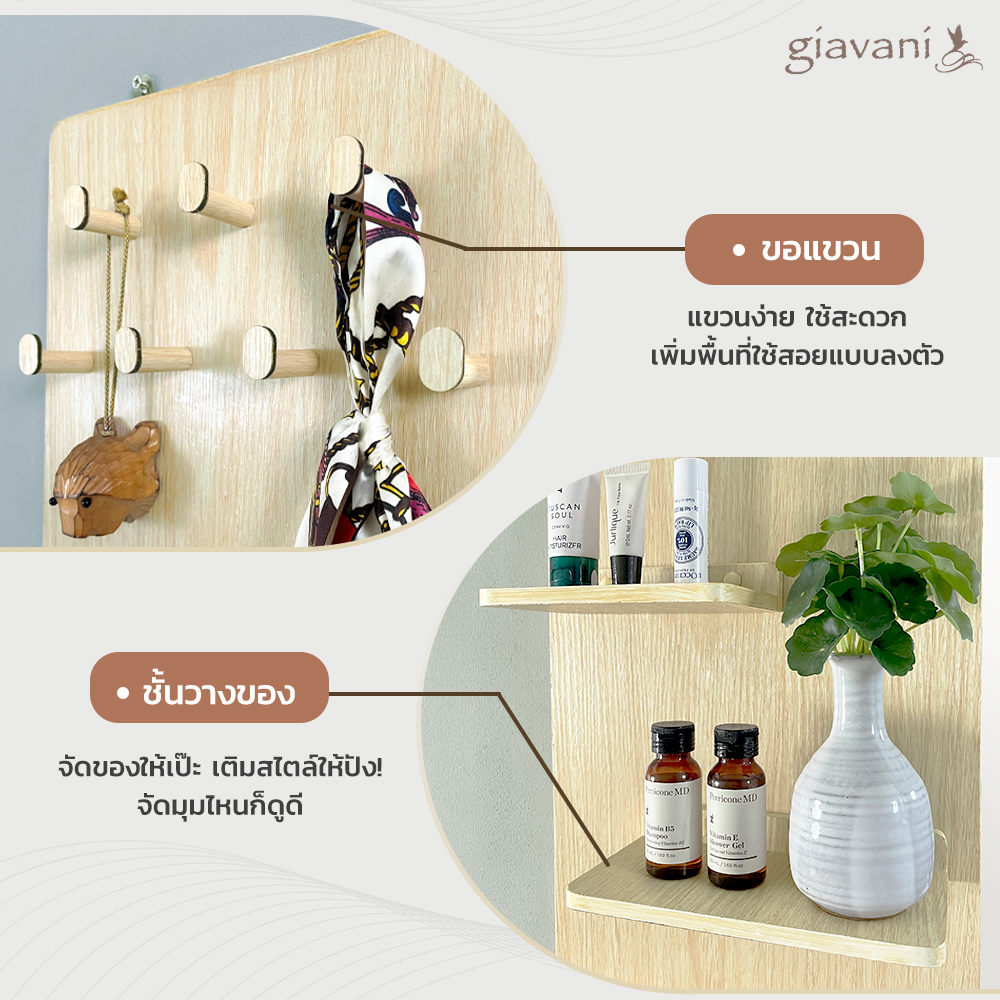 -กระจกมีชั้นวาง 3in1 พร้อมขอแขวน สะดวกลงตัวทุกสไตล์