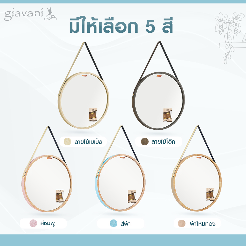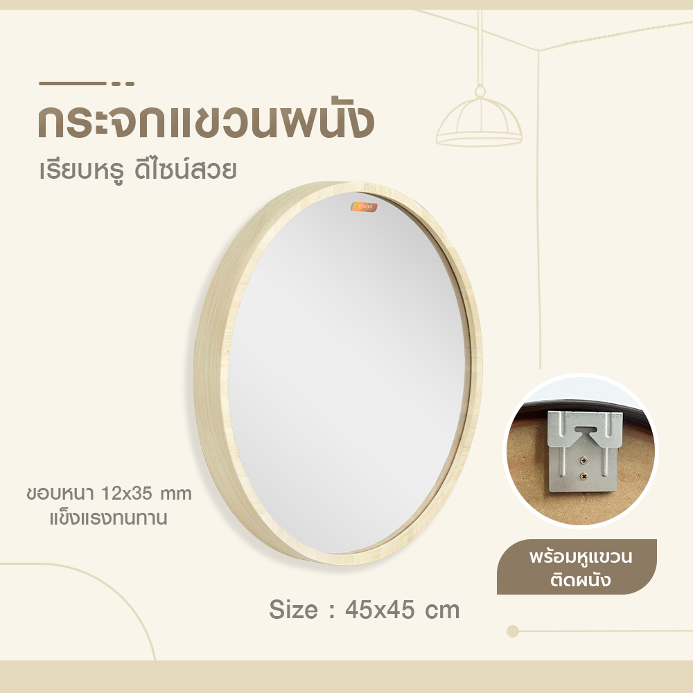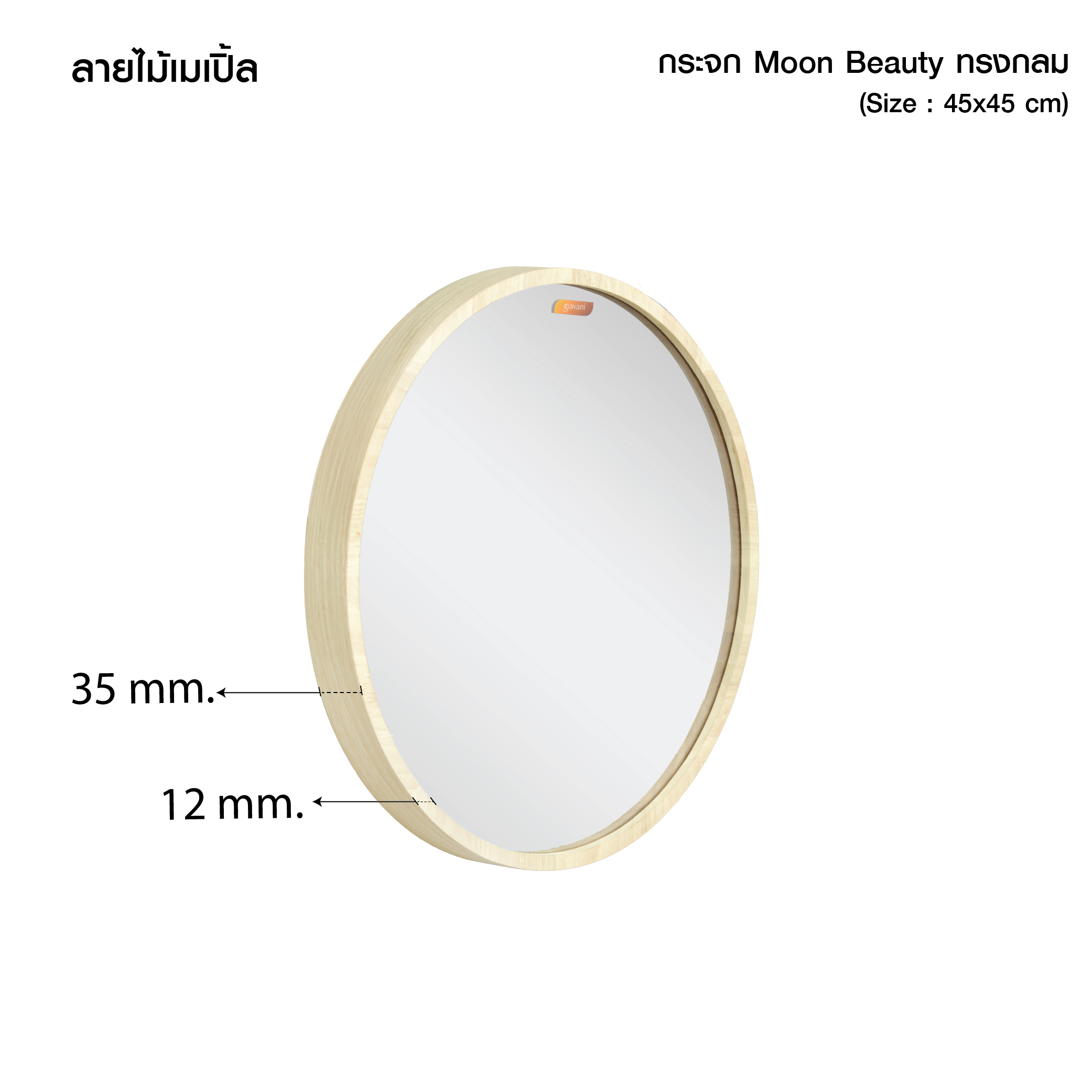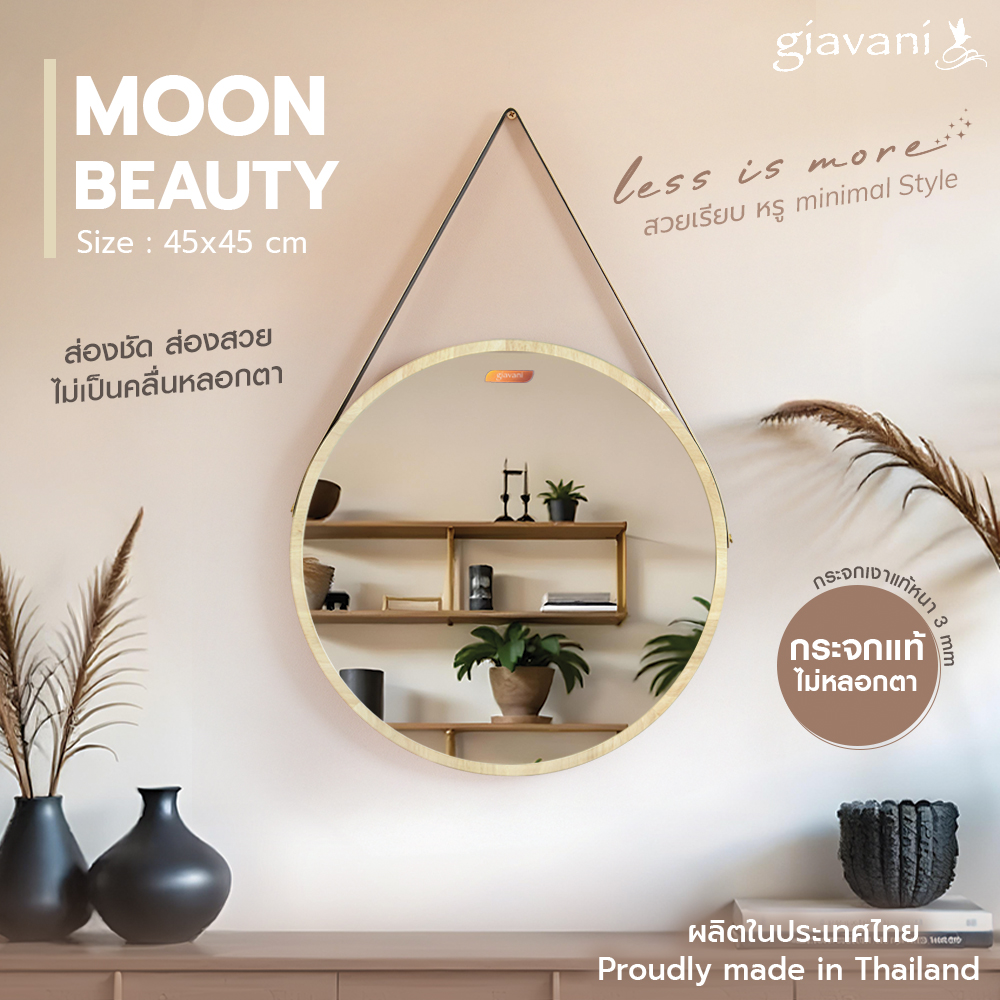 กระจก Moon Beauty แบบมีสายหนังคล้อง/มีหูแขวน ติดผนัง ขนาด 45 cm.Made in Thailand